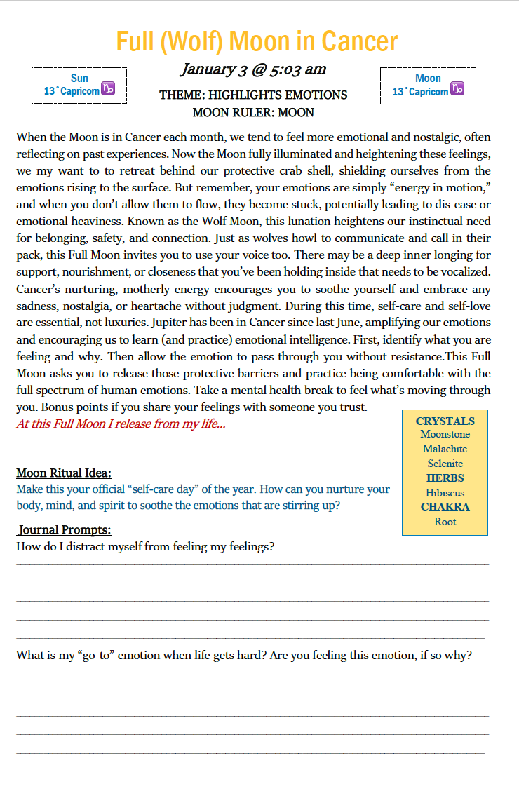 The magic of this book is found in these pages, where you can set intentions or release what no longer serves you under each lunation. Use the ritual suggestion to harmonize with the enegy and add in the Chakras, Crystals and Herb suggestions into your days around each new & full moon.